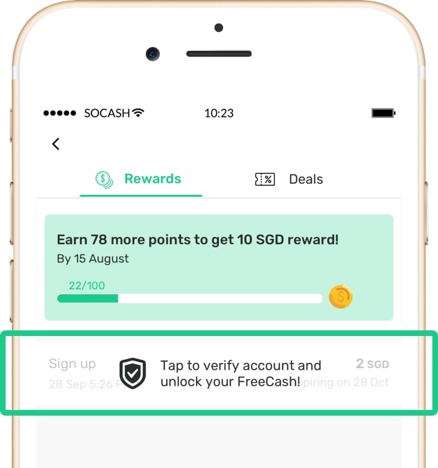 Users receive incentives for withdrawing cash with SOCASH. A Reward could be in the form of cash savings or Deals from brands like Grab, Zilingo, or Sephora.