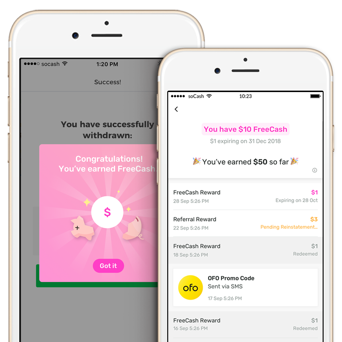 A shiny soCash feature integrated in our app - earn FreeCash when you make cash withdrawals. (we're serious.)